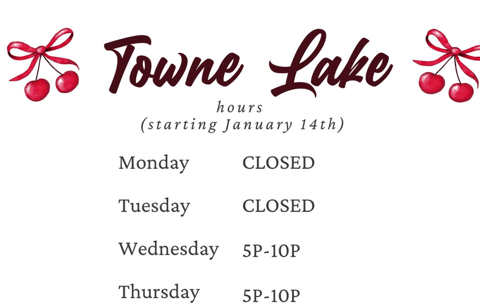 These are their current hours for the Towne Lake location. [See Them All Here]