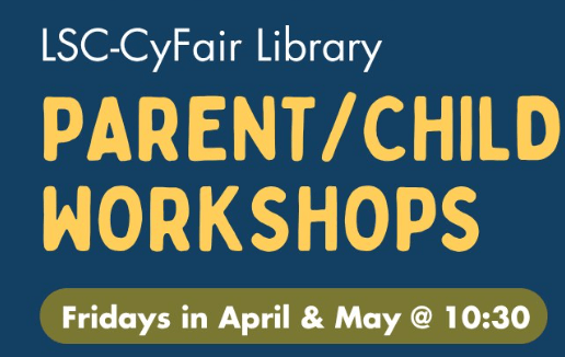 LSC-CyFair is hosting fun play-based family workshops (ages 1-3) every Friday in April and May. View full details here.